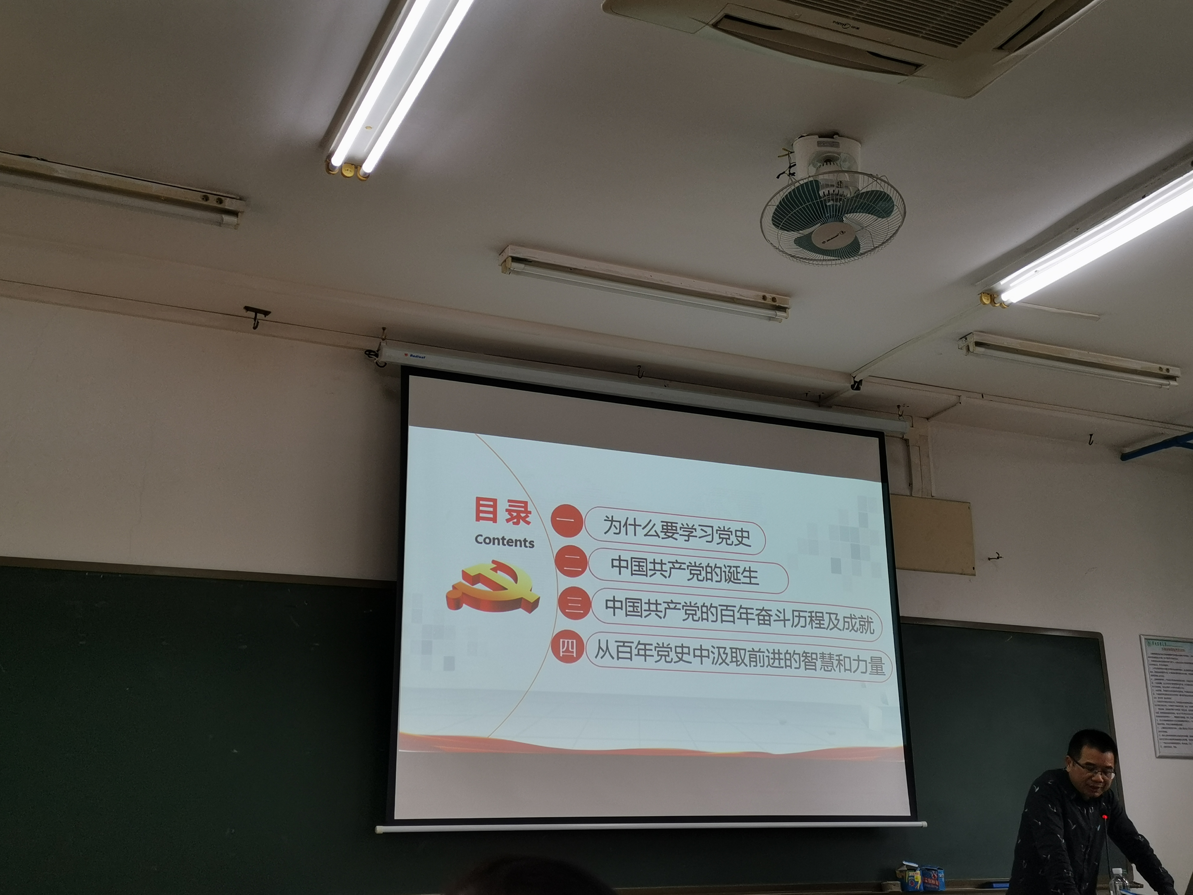 根据中心党总支“学党史、知党情、跟党走”系列学习活动工作要求,中心特邀马克思主义院朱斌副教授作了《中国共产党百年苦难辉煌的历史》主题的专题辅导报告,围绕“为什么要学习党史” 、“中国共产党的诞生”、“中国共产党的百年奋斗历程及成就”、“从百年党史中汲取前进的智慧和力量”四方面给全体老师们讲了一堂生动的思政课,全体党员通过此次党课回顾了中国共产党百年征程,从党史中汲取信仰信念信心的智慧和力量,汲取尊重人民、依靠人民的智慧和力量,汲取推进党的建设的智慧和力量,增强了继承和发扬党的优良传统和优良作风的自觉性,激发了敢于担当、求真务实、开拓创新的自信自觉,进一步浓厚了全中心开展党史学习教育的氛围。