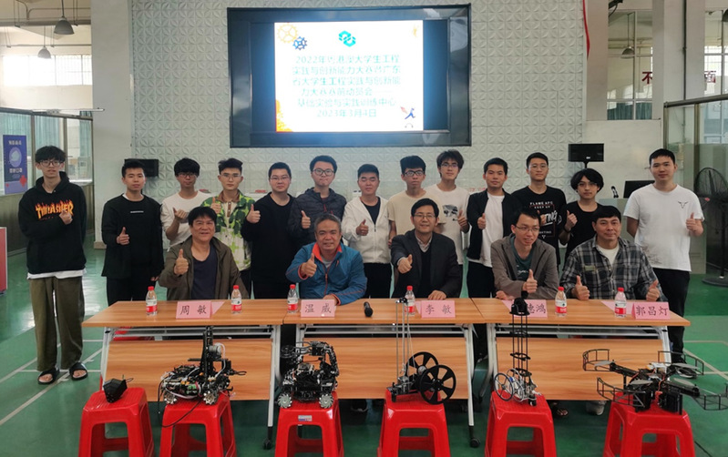 由广东省教育厅主办、华南理工大学承办的2022年粤港澳大学生工程实践与创新能力大赛暨广东省大学生工程实践与创新能力大赛将于3月25-26日举办。为检验各参赛队伍的作品完成情况,做好大赛前各项准备工作,进一步提振鼓舞士气,中心工程实践训练部于3月4日下午在工训楼一楼大厅举行了赛前动员会。中心李敏副主任、各队指导老师和全体参赛同学参加动员会,会议由工程实践训练部主任温威老师主持。
