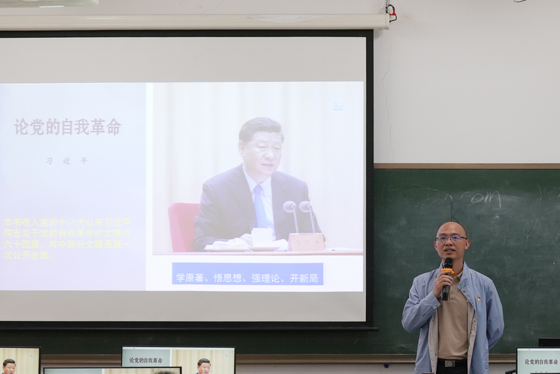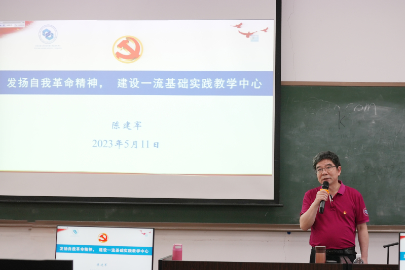 陈建军主任在讲课中全面总结了中国共产党百年奋斗历程的历史经验,阐明了勇于自我革命是中国共产党人的优秀品质和内在动力,全面从严治党是新时代党的自我革命的伟大实践,以人民为中心是中国共产党推进自我革命的价值取向。陈建军强调,党员同志要秉承勇于自我革命的优秀品质,始终坚持真理,勇于修正错误,从自我革命中汲取智慧和力量。陈建军主任从基础实验与实践教学中心工作实际出发,结合当前学校正在推进的双一流建设,聚焦学校培养‘拔尖创新’与‘行业领军’两型人才的目标,强调以培养一流人才育人理念、建设一流实践教学条件、创设一流实验室管理方法、打造一流实验室文化等为重要抓手,坚持守正创新,团结奋斗,努力打造一流的基础实践教学中心。