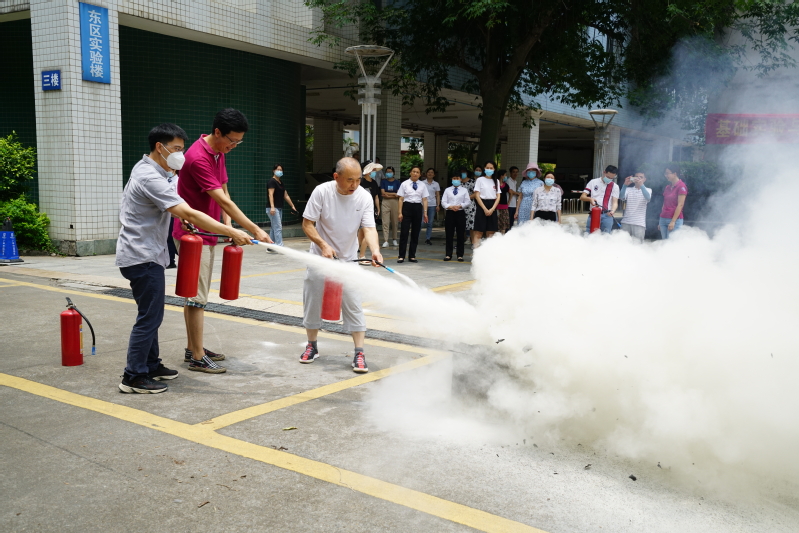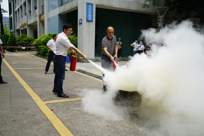 为贯彻落实党的二十大精神,深入开展学习贯彻习近平新时代中国特色社会主义思想主题教育,加强消防安全教育,切实增强师生消防安全意识,提高对突发事件的应急反应能力和自防自救能力,在资产与实验室管理处、保卫处的指导和大力支持下,6月1日下午,基础实验与实践训练中心在东区实验楼三楼平台开展消防演练。中心领导班子成员、中心各实验室主任、实验技术人员、未上课师生及物业人员参加演练。
