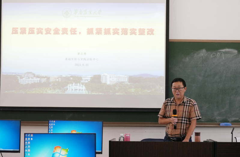 龚正想副主任传达《广东省教育厅关于开展2023年全省教育系统“安全生产月”和“安全生产南粤行”活动的通知》的文件精神,结合学校近期暑假前安全大检查工作要求,他指出,各实验室管理人员需牢固树立安全责任意识,落实网格化责任人,加强实验室安全管理工作,排查并整改实验室安全隐患。龚正想副主任结合中心近期开展的一系列安全工作,提出四点要求:一是落实中心责任人制度,提升思想觉悟,守住安全工作的红线底线;二是假期前,做好实验室安全检查工作,对隐患问题及时排查,立行立改;三是需继续开放的实验室,需采用人防与技防双结合,加强开放管理,落实责任到人,防止安全事故的发生;四是对无法断电实验室,需积极上报并做好安全防范措施。他强调,要深入贯彻落实习近平总书记关于安全生产的重要论述,安全发展理念要入人心,做到严守底线、强化责任、夯实基础、严抓落实,时刻绷紧安全生产这根弦。(文/图 李楠 刘小波,初审:刘小波 复审:李敏 终审:张波)