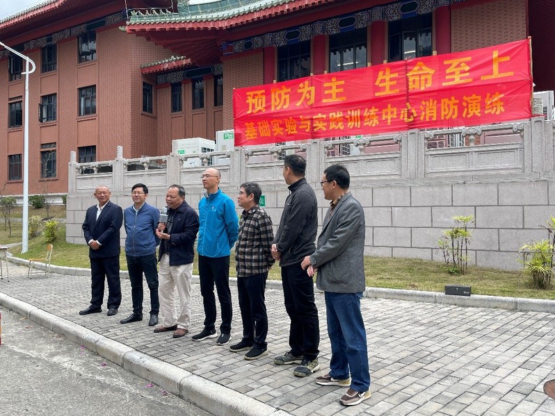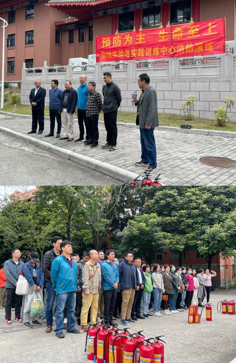 为认真学习贯彻习近平总书记关于消防和安全的重要论述,加强消防安全教育,切实增强师生消防安全意识,提高对突发事件的应急反应能力和自防自救能力,保障师生的身体健康与生命安全,11月16日上午,基础实验与实践训练中心在工程训练楼(34号楼)停车广场开展消防演练。学校资产与实验室管理处领导、中心领导班子成员、中心各实验室主任、实验技术人员、未上课师生及物业人员参加演练。消防演练由中心副主任、消防演练副总指挥龚正想主持。