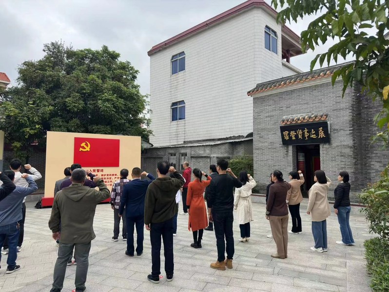 在罗登贤事迹纪念馆,党总支全体党员认真聆听讲解员介绍罗登贤的光辉革命事迹,通过展览馆陈列展示的珍贵资料和历史照片,党员们深切感悟到罗登贤烈士英勇无畏、催人奋进的光辉事迹和崇高精神,深刻缅怀革命先烈为民族独立、人民解放所作出的不朽贡献。参观结束后,在党总支书记张波同志的领誓下,党总支全体党员在党旗前重温入党誓词,在铿锵有力的宣誓声中回望初心。