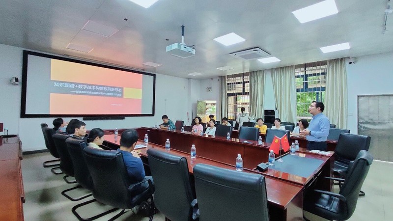 在研讨学习现场,与会教师们观看了高校专家的最新讲座视频回放,视频主题聚焦“知识图谱赋能一流课程建设和教学创新”和“数字技术驱动的智慧课堂教学设计创新与模式创新”。随后,与会教师们针对“知识图谱”、“数字技术”、“人工智能”等赋能教学科研展开讨论并发表学习感想。