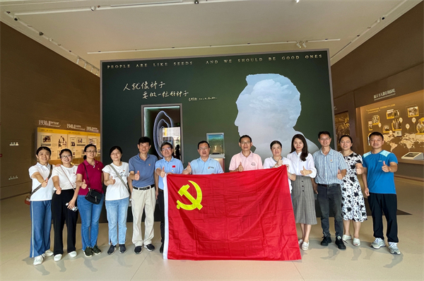 紧接着全体党员抵达由袁隆平院士亲自选址和谋划的广东省重点农业农科产业园——隆平院士港。走进隆平好种子精神传承馆,党员们认真学习了袁隆平院士以“十”为纲、以“种”为核的成长经历和矢志粮食安全——“中国人的饭碗要牢牢端在自己手中”的强烈使命感,深切体会到他的科研精神和爱国精神。
