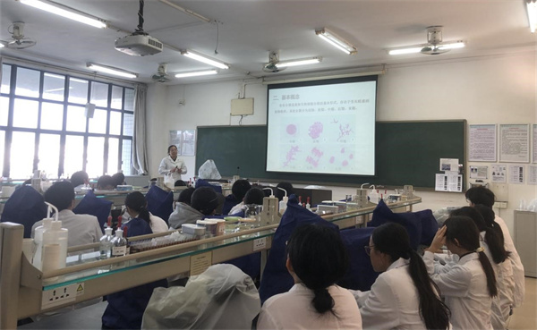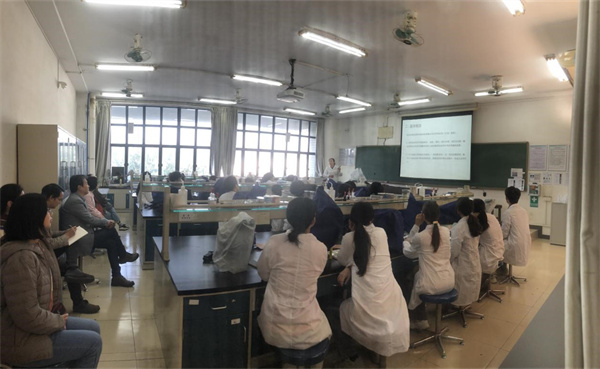 本次公开课主题为“秋水仙素对洋葱根尖细胞染色体结构变异的影响”,郭海滨详细讲解了染色体结构变异在细胞分裂过程中的表现形式、发生机理及其遗传效应,同时融入思政教育元素,通过讲解染色体结构变异在农业生产和育种上的应用,引导学生关注国家粮食安全和农业发展,认识到科学研究对社会进步的重要贡献,激发学生的家国情怀和社会责任感。课堂整体设计合理,学生精神饱满,教学气氛融洽。