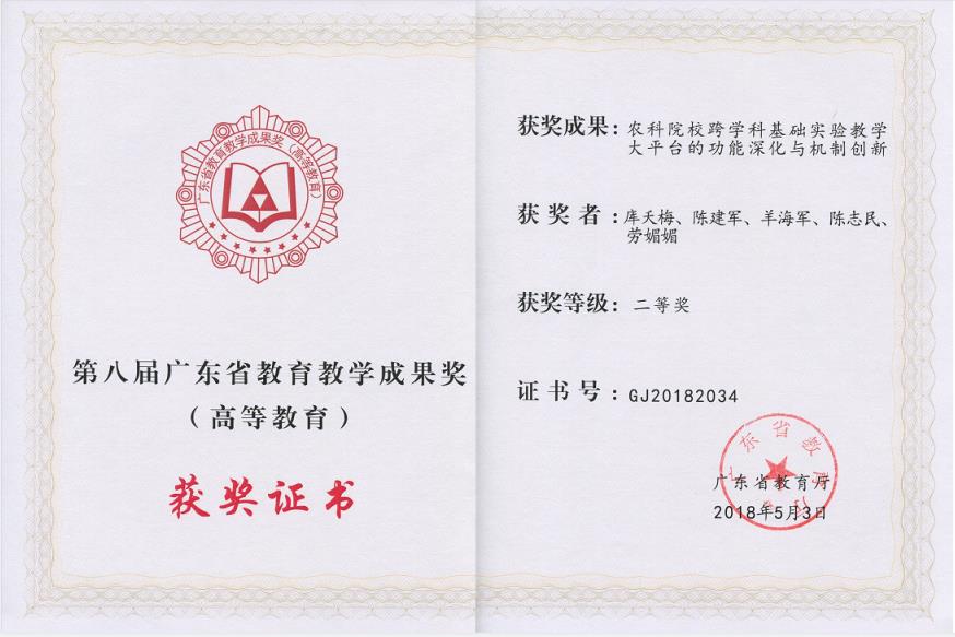 4 | 基于创新能力培养的遗传学实验教学资源体系改革研究 | 华南农教[2020]41号 | 李楠 | 李亚娟,郭海滨,库夭梅,王少奎,刘自强 | 2020.7-2022.12 | 1 | 校级重点资助 |